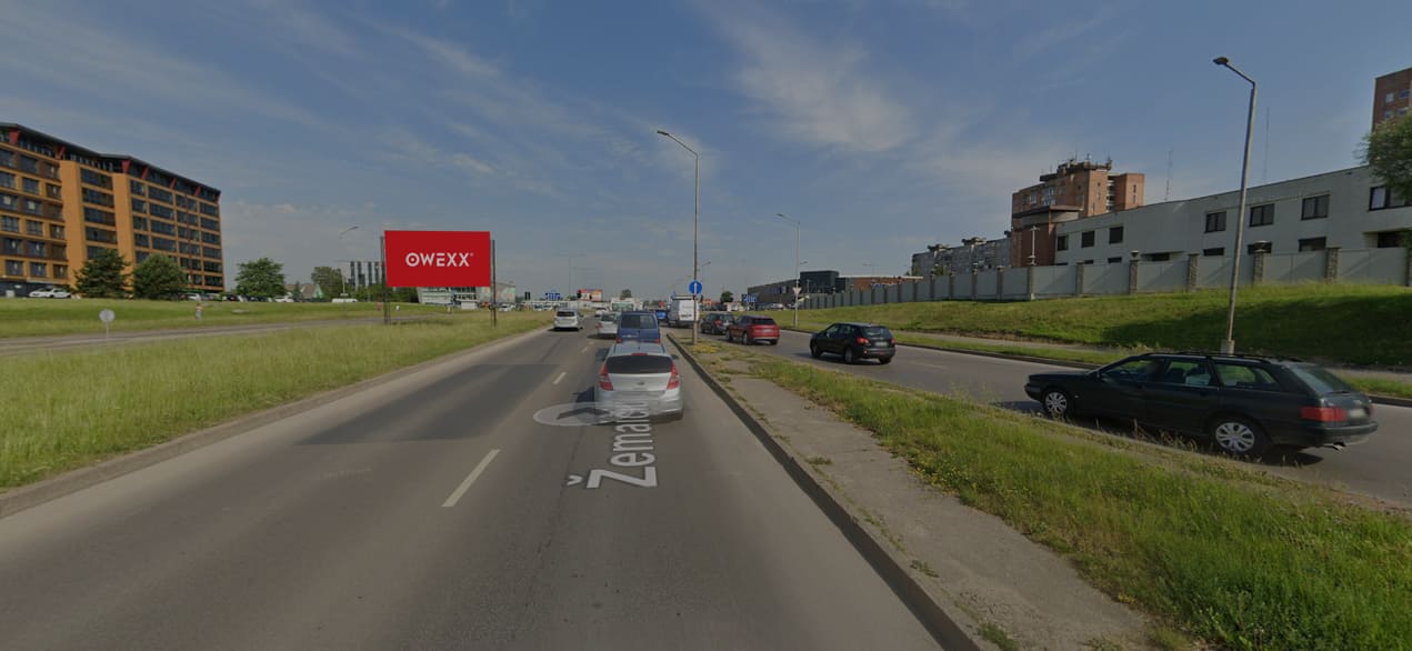 Ne tik populiarius, kauniečių ir miesto svečių pamėgtas prekybos ir laisvalaikio centras pritraukia didžiulius transporto priemonių srautus, vykstančius pro modernų, aukštos kokybės ekraną, bet ir kiti objektai bei kryptys: Žemaičių plentu atvykstama iš intensyvaus eismo Baltų prospekto, vykstama link Kuršių ir 9-ojo forto gatvių, o taip pat Islandijos plento, Kauno vakarinio aplinkkelio, A1 ir A5 magistralinių kelių, vedančių link Vilniaus, Klaipėdos, Marijampolės. Puikiai tiek kauniečiams, tiek miesto svečiams ar pro šalį vykstantiems žinoma eismo sankryža šalia prekybos ir laisvalaikio centro „Mega“ – itin intensyvaus eismo zona, o lauko ekranas yra visai netoliese, gerai matomas važiuojantiems link šios sankryžos Žemaičių plentu.
